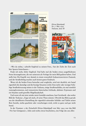 »Auf manchen meiner Bildern weisen Straßen oder Wege in die Tiefe des Bildraumes. Im Gegensatz zu den Bildern mit Toren oder Türen wirken sie auf den ersten Blick zugänglich und ohne Geheimnis. Bis der Betrachter feststellt, dass vor der nächsten Kurve oder im Dickicht der Bäume die immer gleiche Frage lauert: Was passiert dahinter? Vielleicht, geneigte Leserin, geneigter Leser, erfahren Sie es hier.«
